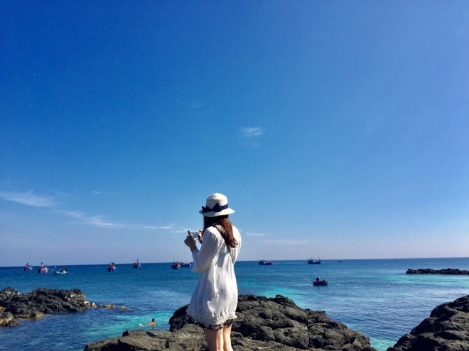 Sau một buổi sáng thăm quan tại đảo Bé, chúng mình quay trở về đảo Lớn và tiếp tục đến với Hòn Mù Cu nằm ở phía Đông của Lý Sơn vào buổi chiều. Đứng tại đây, chỉ cần “check-in” cùng với ngọn hải đăng thôi bạn đã có được những bức ảnh tuyệt đẹp ngỡ như đang ở đảo Jeju rồi.