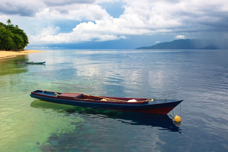 Một kỳ quan thiên nhiên khác của Indonesia là Hồ Toba, đây khu vực vừa là hồ nước vừa là siêu núi lửa. Hồ nằm trong miệng núi lửa, được hình thành từ 69.000 đến 77.000 năm trước và được cho là kết quả của một vụ phun trào thảm khốc. Hồ rộng 1.145 km2 và sâu 450 mét. Tại đây, bạn có thể đi bơi, trượt nước, chèo thuyền, hoặc câu cá…