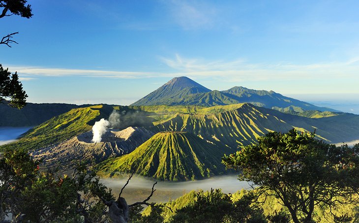 Indonesia nằm trên Vành đai lửa, một khu vực có một số núi lửa hoạt động mạnh nhất trên thế giới. Nhiều ngọn núi lửa, như Núi Merapi, nổi tiếng với những vụ phun trào dữ dội và vẻ đẹp tuyệt vời nhưng đầy nguy hiểm của chúng. Núi Bromo là một trong những nơi được biết đến nhiều nhất, phần lớn nhờ vào tầm nhìn thú vị của nó, đặc biệt khi đứng trên miệng núi lửa ngắm mặt trời mọc.