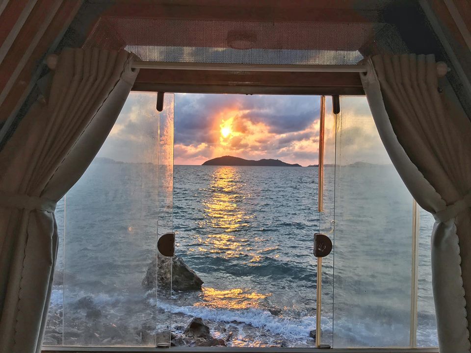 Vì vấn đề book phòng cận ngày nên ngày đầu tiên mình ở phòng tổ ong, qua ngày hôm sau mình được đổi qua bungalow mái gỗ 2 giường, 2 đêm ở là hết 1 triệu 200.
